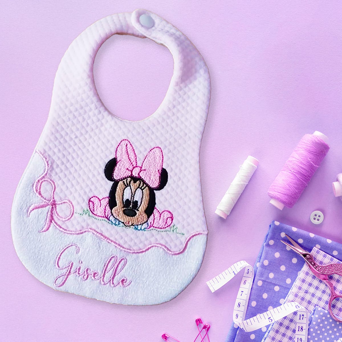 Dopo il bagnetto, solo coccole e magia. Ricama il nome della tua bimba con il suo personaggio preferito.