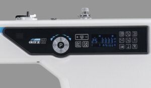 Macchina par cucire top di gamma con testa a secco, braccio maggiorato lungo 305mm e sistema adattivo del tessuto di seconda generazione AMH2 che sfrutta il chip Octopus ad Intelligenza Artificiale dual core e il doppio motore APE da 11,3Nm a doppia trazione.
