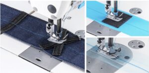 II Chip con intelligenza artificiale rileva le variazioni di tessuto alla velocità della luce, calcolando i parametri ottimali. II motore a doppia trazione fornisce quindi una penetrazione e una forza di avanzamento precise, rendendo possibile la cucitura senza interruzioni su tutti i tessuti.