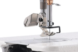Puo’ cucire il 7% in più di spessore, ad esempio cuce facilmente 15 strati di jeans grazie agli organi di cucitura AMH1.